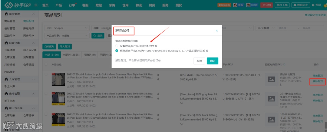 - 优化解除配对:支持解除当前产品,或相同平台SKU的其他产品配对关系