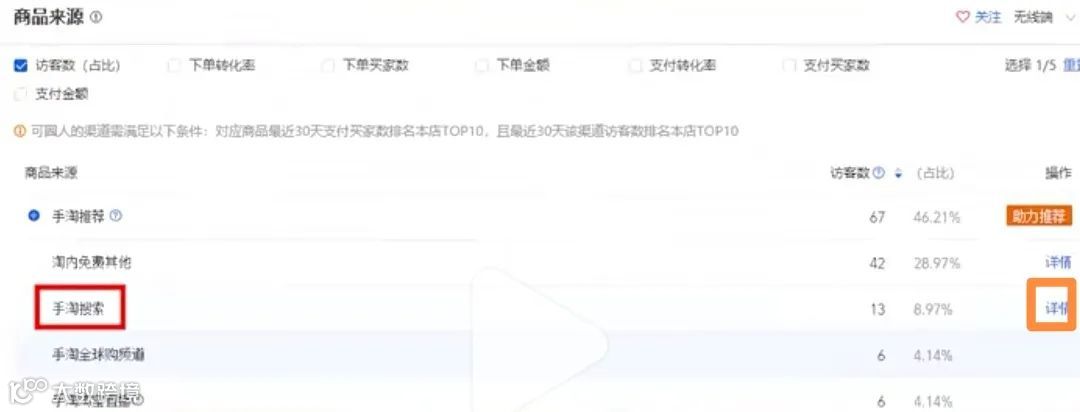 选择“手淘搜索渠道”,点击详情