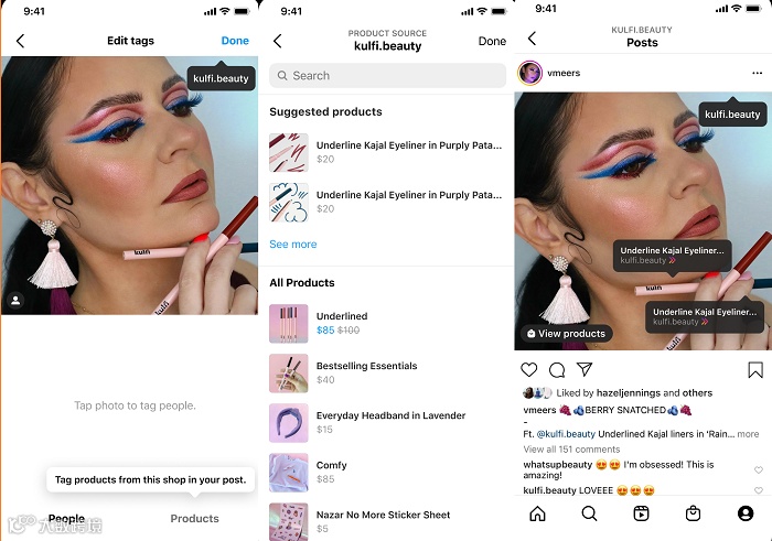 用户可以在帖文中直接标记商品并支持跳转购买。品牌可以引导用户在原创帖文中标记商品,并给予奖励,从而提升品牌和产品的曝光。