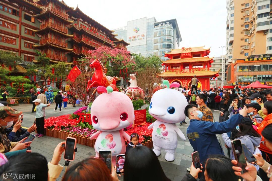 融入“大湾鸡”IP元素,“喜洋洋、乐融融”萌态亮相,与市民游客亲切互动,为传统年俗注入时代活力。