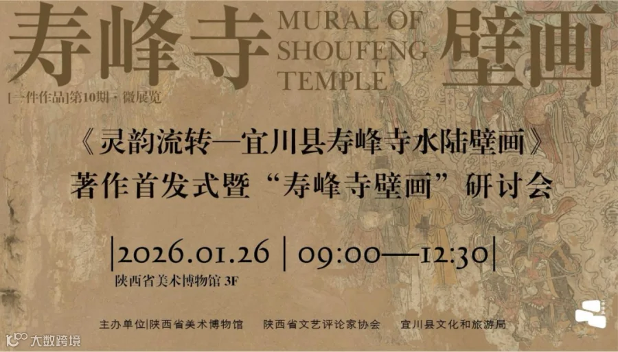 2026年1月26日,《灵韵流转——宜川县寿峰寺水陆壁画》著作首发式暨 “寿峰寺壁画展” 研讨会在陕西省美术博物馆成功举办。活动由陕西省美术博物馆、陕西省文艺评论家协会、宜川县文化和旅游局联合主办,汇聚陕晋豫鄂等地专家学者,围绕寿峰寺壁画的历史价值、艺术内涵、保护传承等议题展开深度研讨,以学术之力为文化遗产活化赋能。