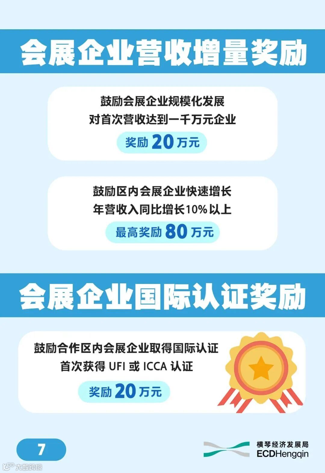 💁♀️此外,《扶持辦法》還針對會展企業營收、存量發展、各類會議提出了多項具有針對性的補貼及獎勵。對在合作區內年度營收超過1000萬元的會展企業,給予20萬元獎勵。對營收同比增長10%以上的存量企業,按其會展業務相關主營業務收入的2%獎勵,最高可獲80萬元。此外,符合相關規定條件的行業會議和國際性會議,最高可獲100萬元人民幣的補貼。