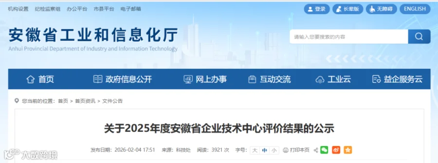 根据《安徽省企业技术中心认定管理办法》(皖经信科技〔2023〕24号)和《关于开展2025年安徽省企业技术中心认定与评价工作的通知》要求,安徽省工业和信息化厅组织开展了2025年度安徽省企业技术中心评价工作。经企业填报、县(区)初审、市级审核、综合评价、部门联合审查、厅长办公会审议等程序,初步确定2025年度安徽省企业技术中心评价结果。