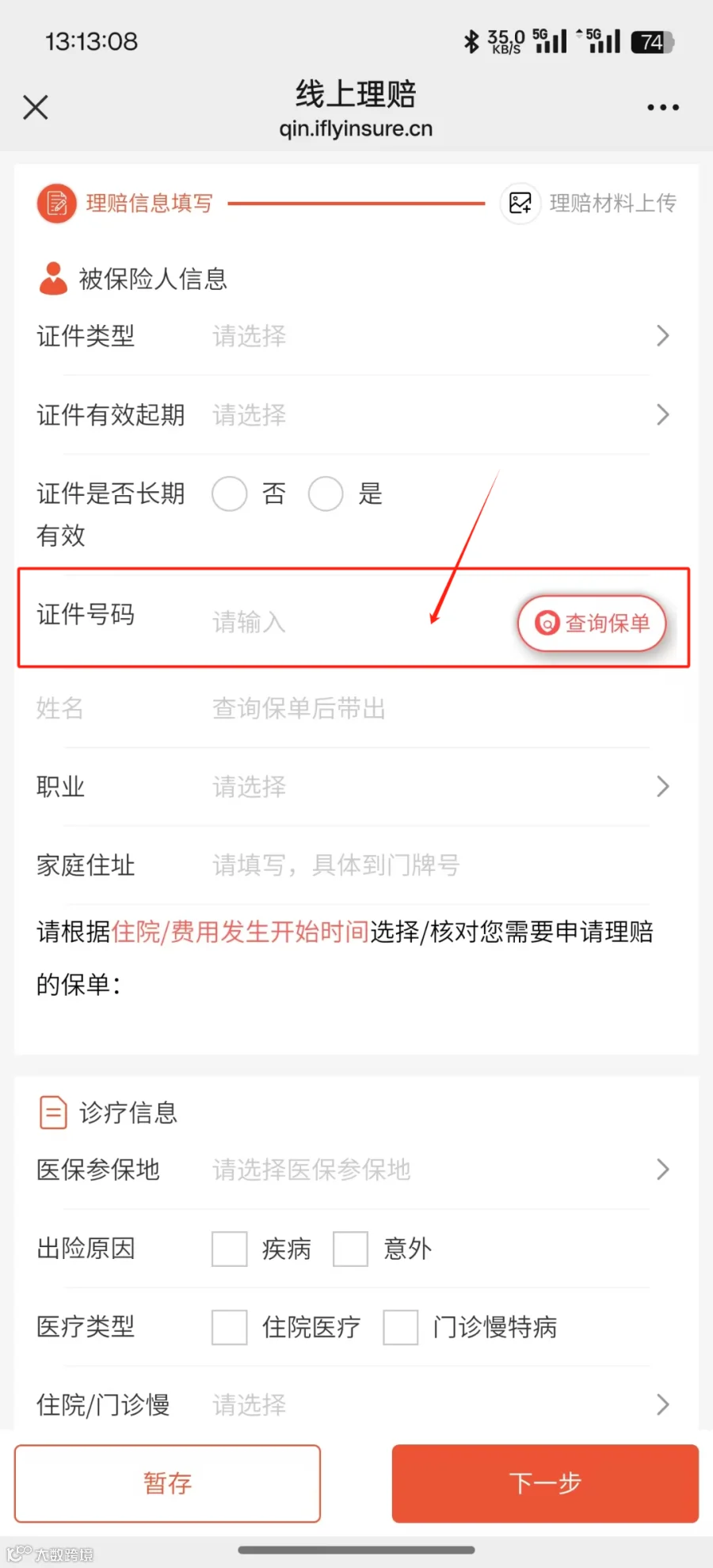 输入被保险人证件号查询保单,填写诊疗及领款人信息后,系统将优先调取医保结算数据;省内医院就医的,系统可自动获取所需材料,无需另行上传医疗票据、病历。