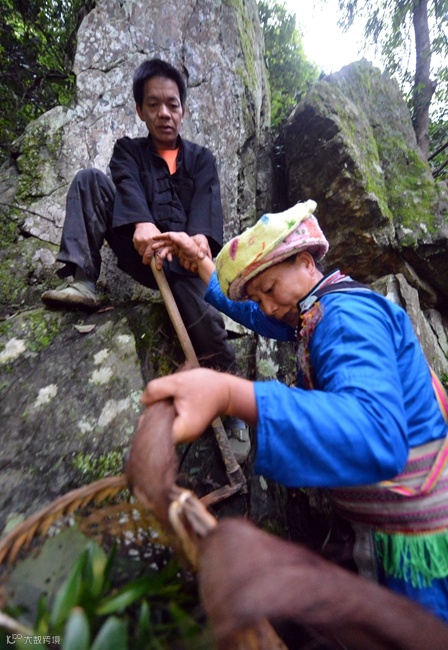 走到江门口屯,正好碰上潘顺兰夫妇前往深山老林里采药。潘顺兰告诉记者,生活在深山密林中的瑶族同胞,对山中的野生藤木感知最为深刻,为了生存,抵御病毒的入侵,经过无数次的实践与应用,才形成瑶族庞桶药浴的千年古方。盘瑶的妇女个个都是采药能手,他们从小就和前一辈的老人,通过口授心传学习识别各种草木的性质,利用草木的枝、根、皮、叶、花朵医治疾病。“庞桶浴用药少则十几味,多则几十味的大山之灵草、深山之鲜药加水熬煮成药水,用药水放入杉木桶,人坐桶内熏浴浸泡,让药液渗透五脏六腑、全身经络,达到祛风除湿、活血化瘀、消除疲劳、防病治病的功效,别是对防治风湿、妇科、皮肤和伤风感冒等疾病尤为有效。”