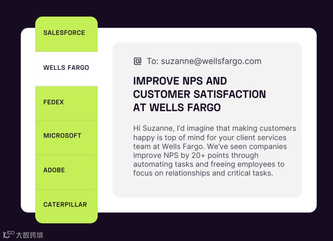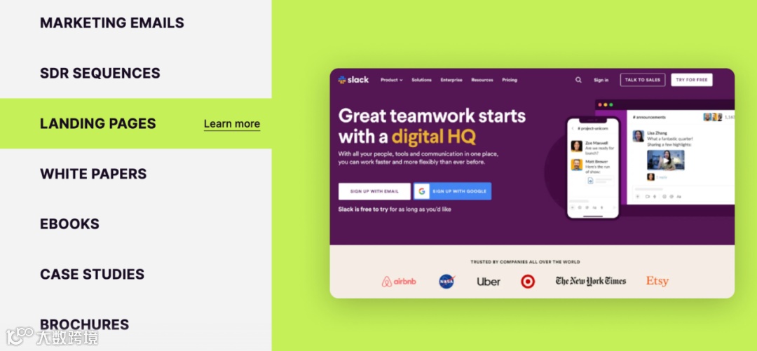 即时性的行业特定内容:个性化电子邮件、落地页、白皮书、销售文档、广告等,根据每个目标市场的痛点和价值主张进行定制。