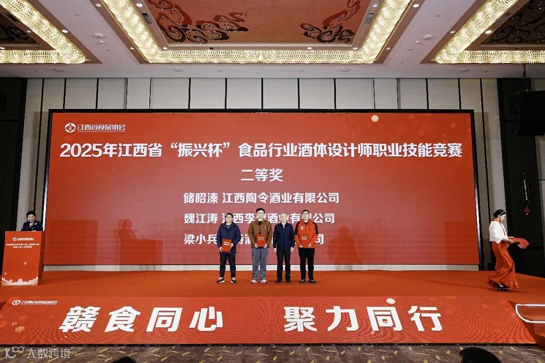 大会举行了隆重的2025年江西省"振兴杯"食品行业酒体设计师职业技能竞赛颁奖仪式。南昌大学原副校长、南昌大学国际食品创新研究院院长刘成梅教授宣读了获奖名单,大会依次为竞赛支持单位、协办单位及优胜奖、三等奖、二等奖、一等奖获奖选手颁奖。