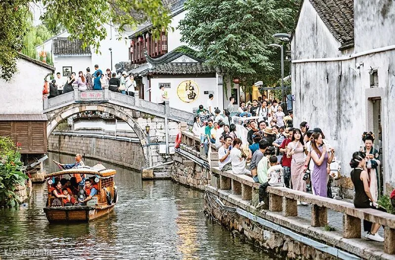 位于江苏省苏州古城东北隅的平江历史文化街区,至今已有2500多年历史。长期以来,苏州市开展平江历史文化街区保护,深入挖掘文化遗产资源文化内涵,高质量、精细化推进历史文化街区的整体性保护与活态传承。图为2025年10月,游人如织的平江历史文化街区。 视觉中国 冷文/摄