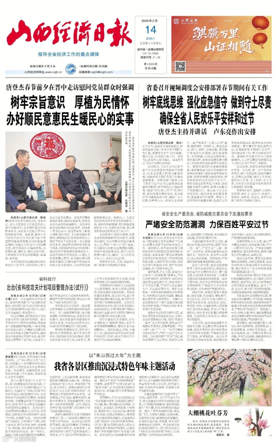 今日《山西经济日报》速览【2026年2月14日】