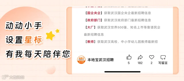 ▌特别说明:本地宝武汉招聘公众号仅为大家整理及分享招聘信息,大家可于后台回复相应关键词获取各单位报名方式及详细公告。转载请联系小编!