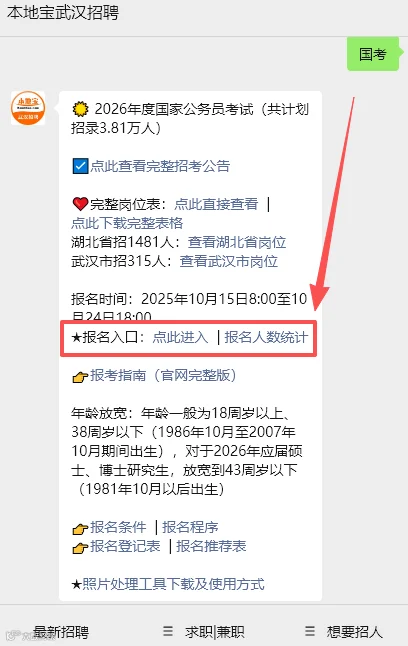 💛可在【本地宝武汉招聘】公众号回复【国考】获取报名人数统计查询入口。