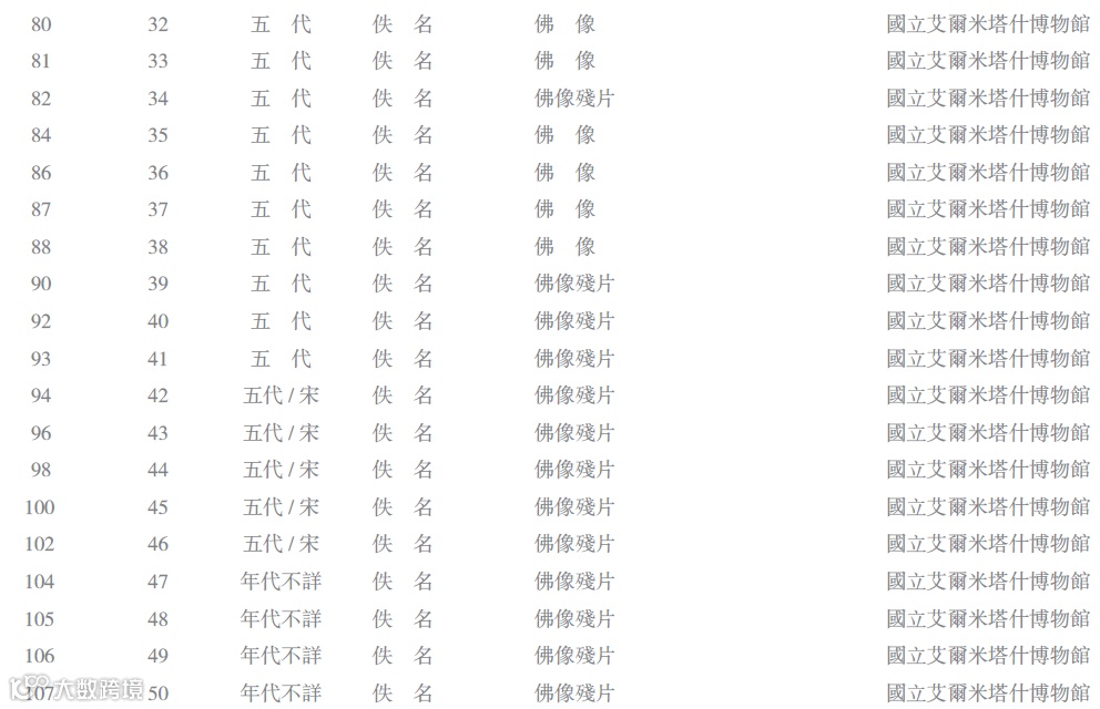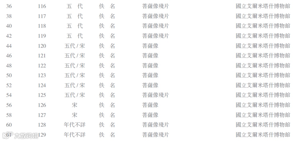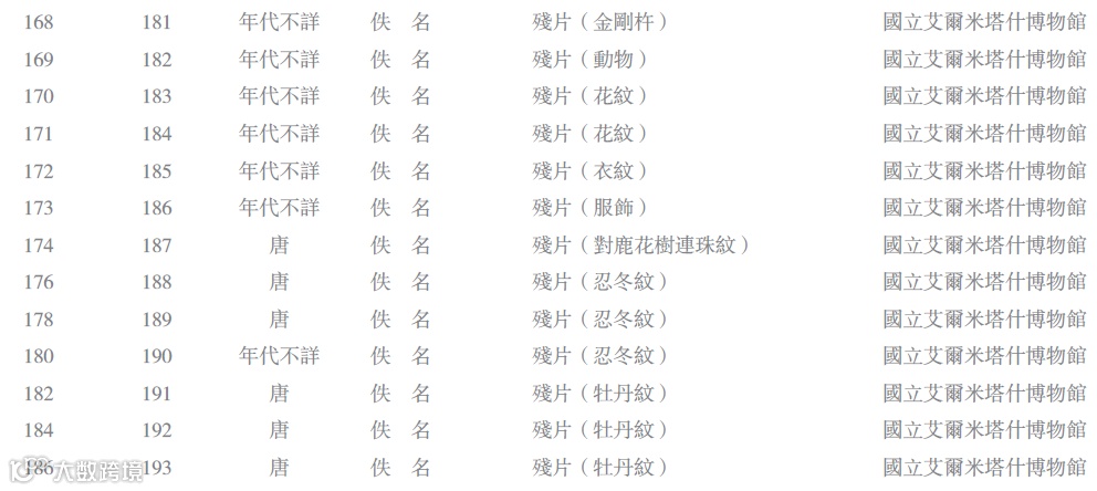 据统计,俄藏敦煌艺术品大约三百件,包含雕塑四十三号,壁画十六号,绢画五十九号,麻布画、幡画七十八号,纸画二十四号,工艺品三十六号,残片四十九号等。