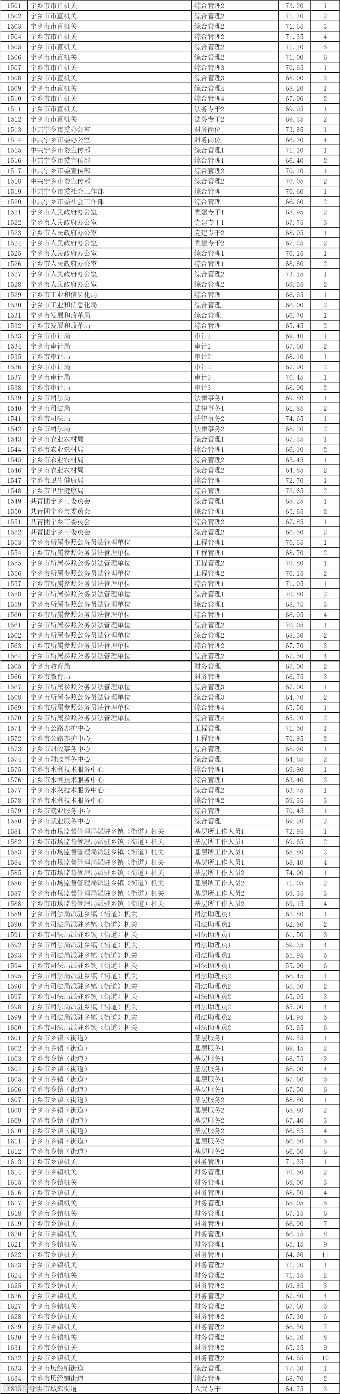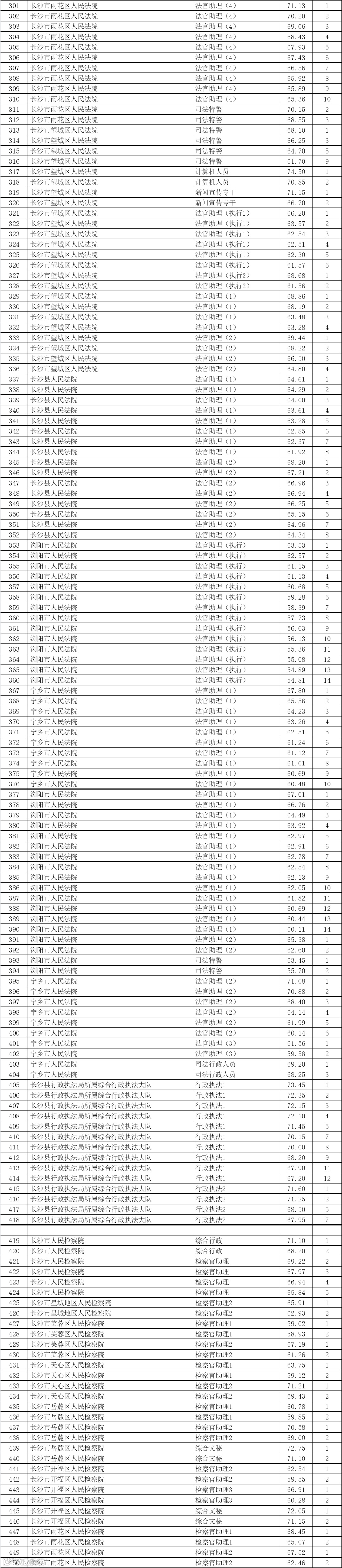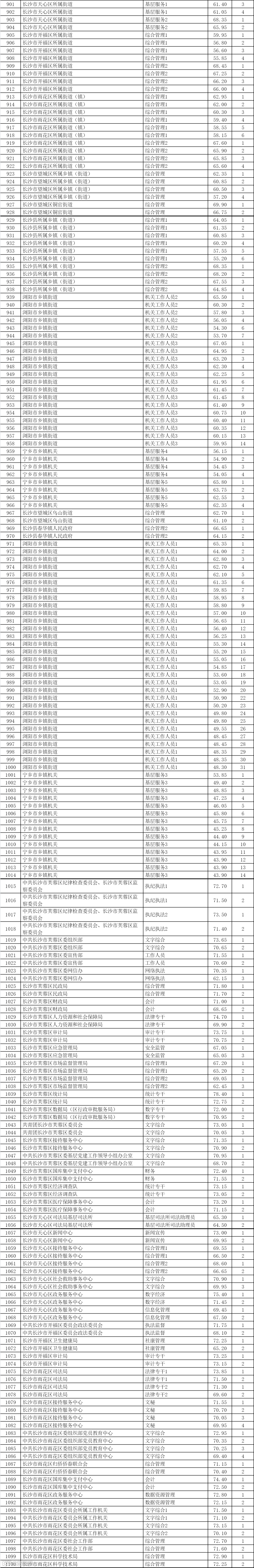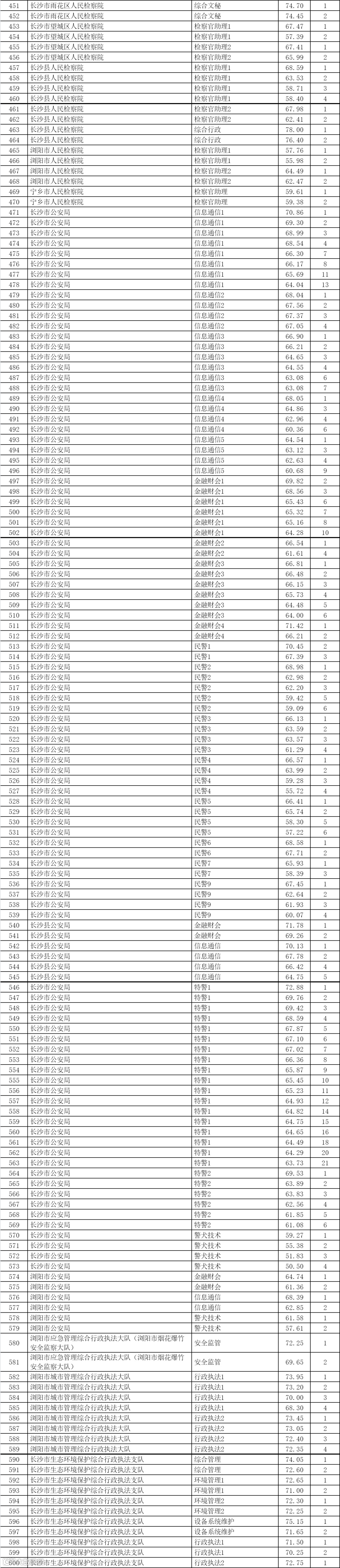 长沙岗位表以及2025年长沙进面分数