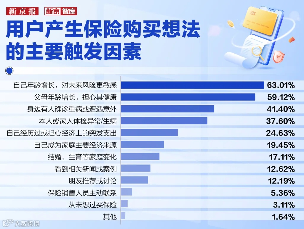 这意味着,保险需求并不是“被创造”的,而是被生活场景“唤醒”的——年龄渐长带来的健康担忧、父母老去引发的赡养压力、身边亲友患病带来的风险警示,这些真实的生活体验,才是推动用户主动关注保险的核心动力。