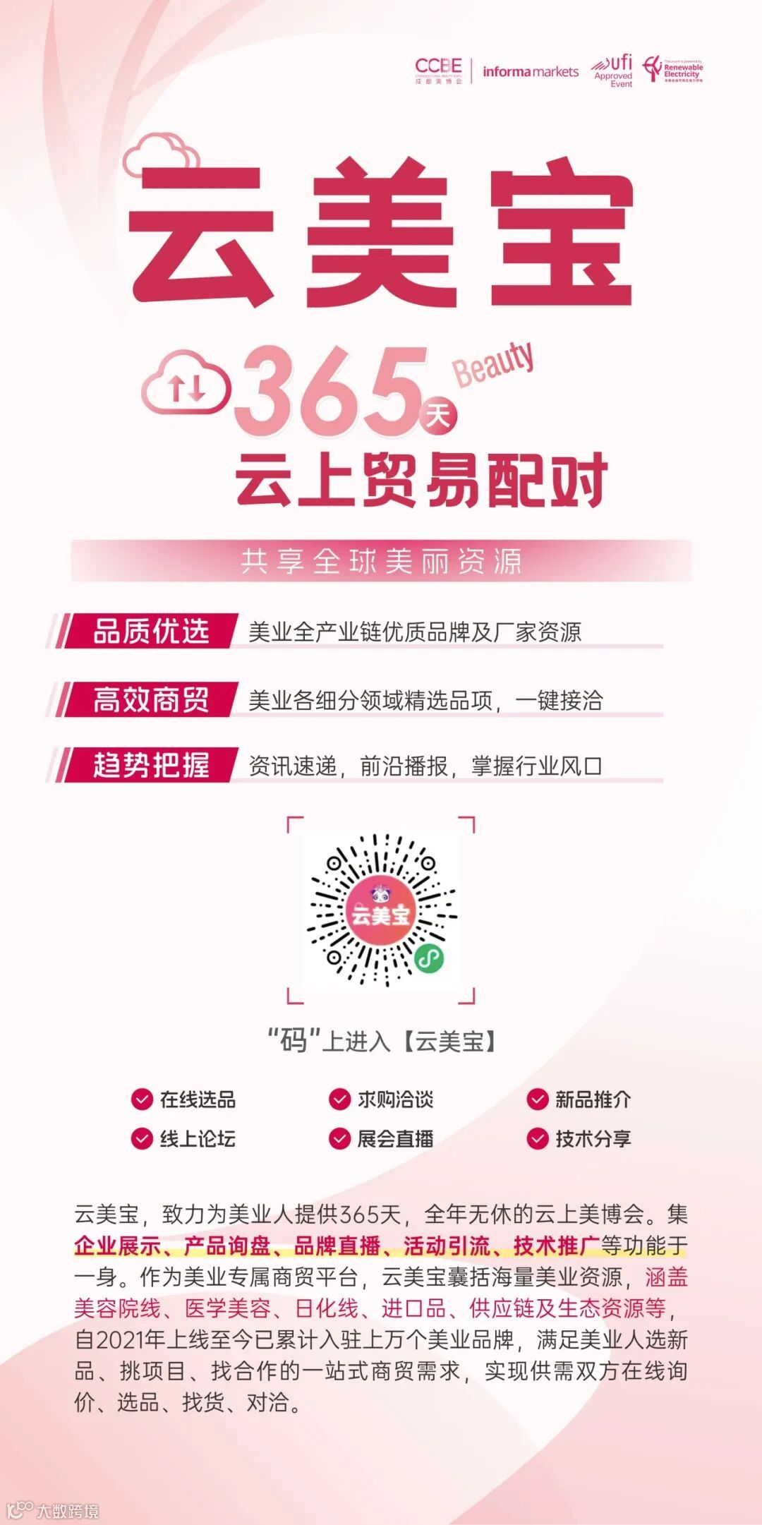 为方便所有美业人实时了解展会最新概况,展会期间主办方将开放多渠道现场直播,您可提前关注哦!