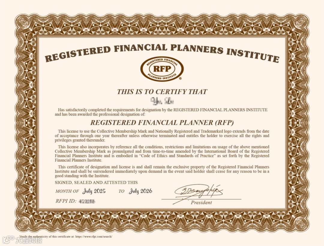 RFP“1+7+N”认证体系,打造全球理财规划领域的黄金标杆。