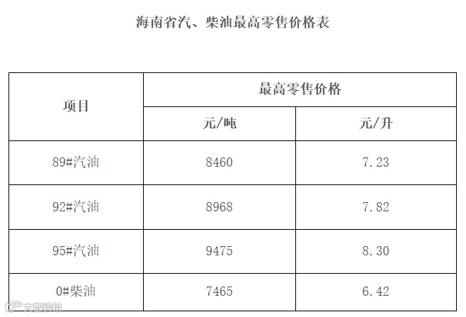 海南/全国的最新油价
