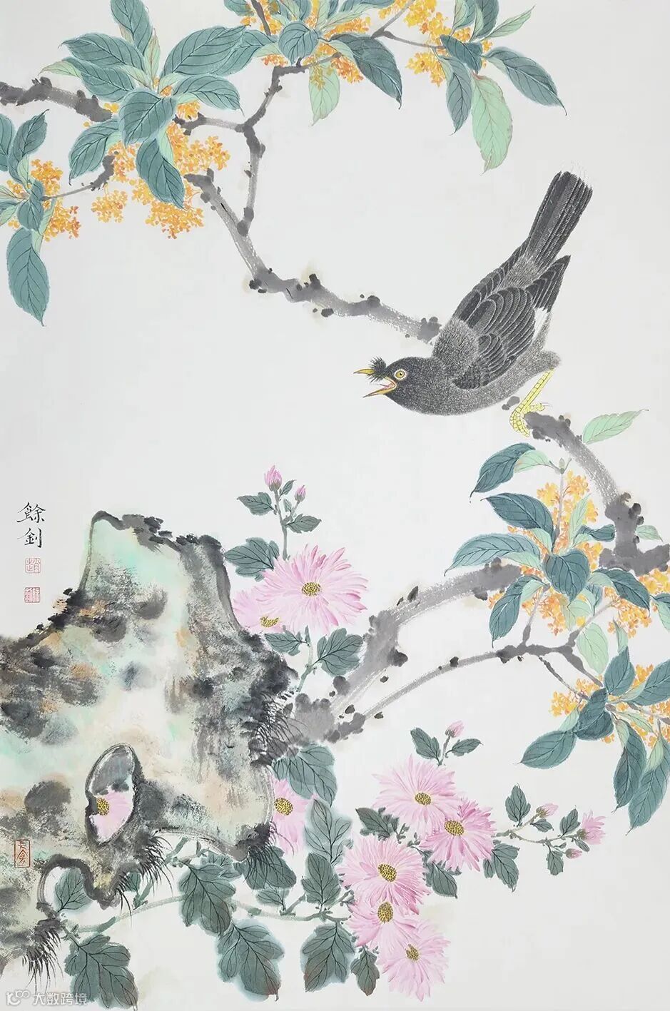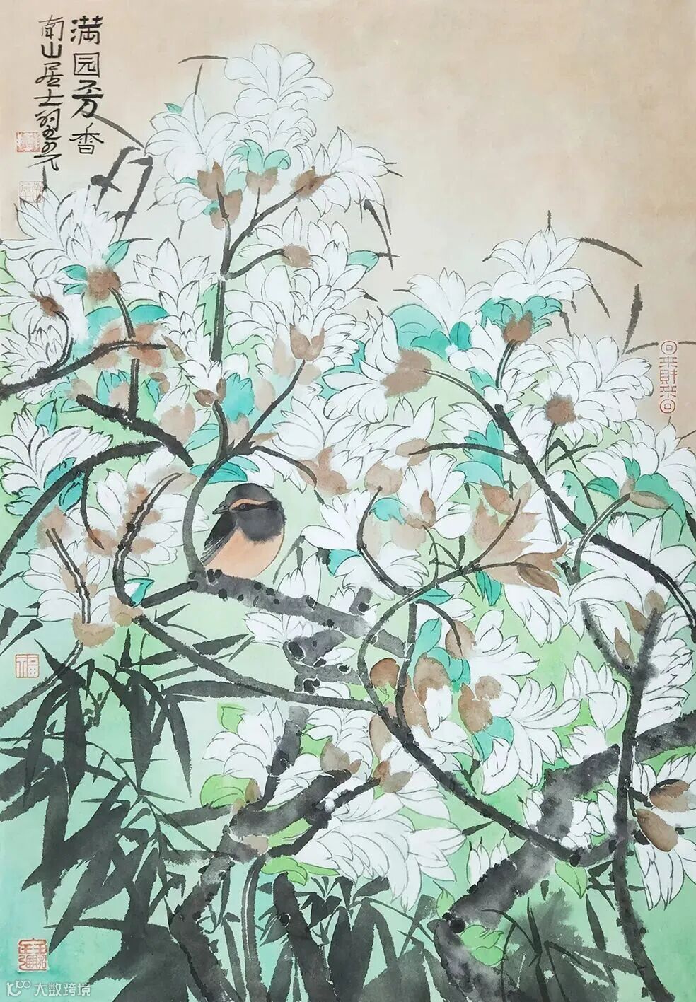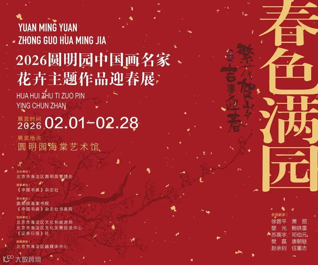 农历丙午马年将至,正值游园旺季,北京市海淀区园林绿化局将圆明园中摆满各种鲜花,举办“繁花贺岁、吉事迎春”系列活动。为此,圆明园管理处和《中国书画》杂志社共同策划了“春色满园•2026圆明园中国画名家花卉主题作品迎春展”,将40余件花鸟画佳作呈现于圆明园海棠艺术馆。所展出的中国画作品和现场鲜花盆景珠联璧合、相得益彰。花鸟画是传统中国画中重要的一个画科,且历代名家辈出。比如五代黄荃、徐熙,宋徽宗赵佶,元代钱选,明代陈洪绶、文征明、徐渭,还有清代赵之谦、任伯年,近现代的吴昌硕、齐白石、潘天寿、李苦禅等画家均有不少花鸟画佳作传世,不胜枚举。可以说,从历代花鸟画的代表画家和作品中,足以窥得中国绘画史发展的某些端倪。本次展览所邀请到的10位中青年画家,都是当代花鸟画领域较为活跃的代表性作者。他们艺术风格各具特色,格调颇具高度,亦有较广泛的学术影响。