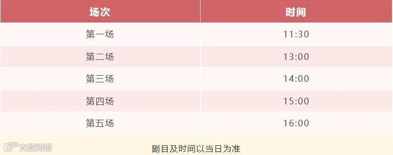 场次安排:10:00-11:30;15:00-16:30