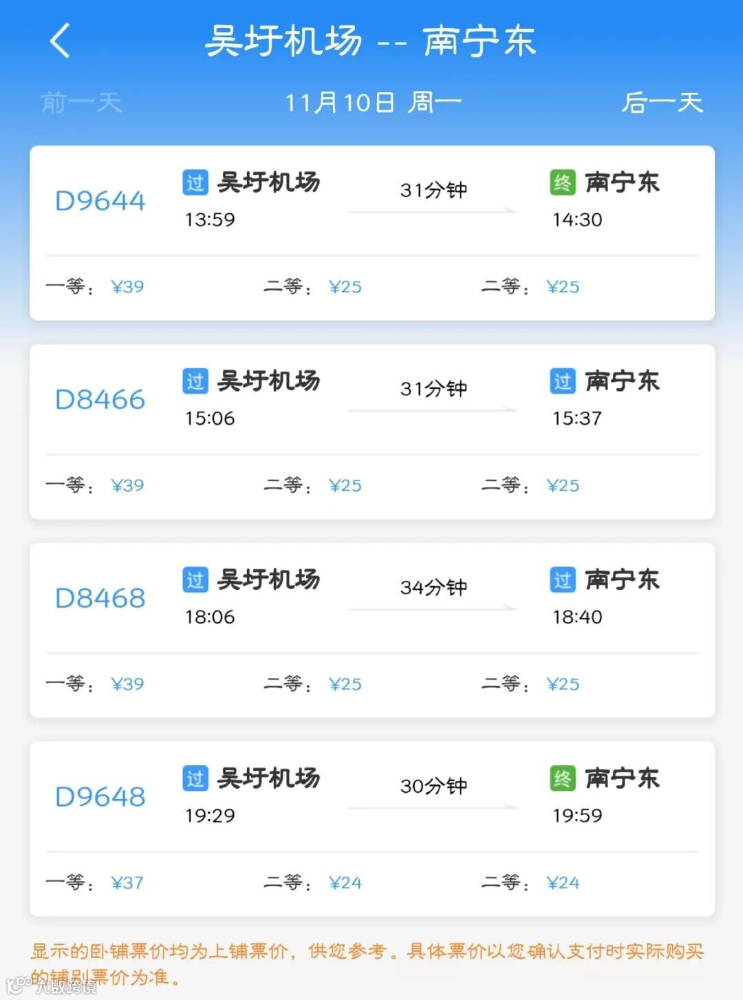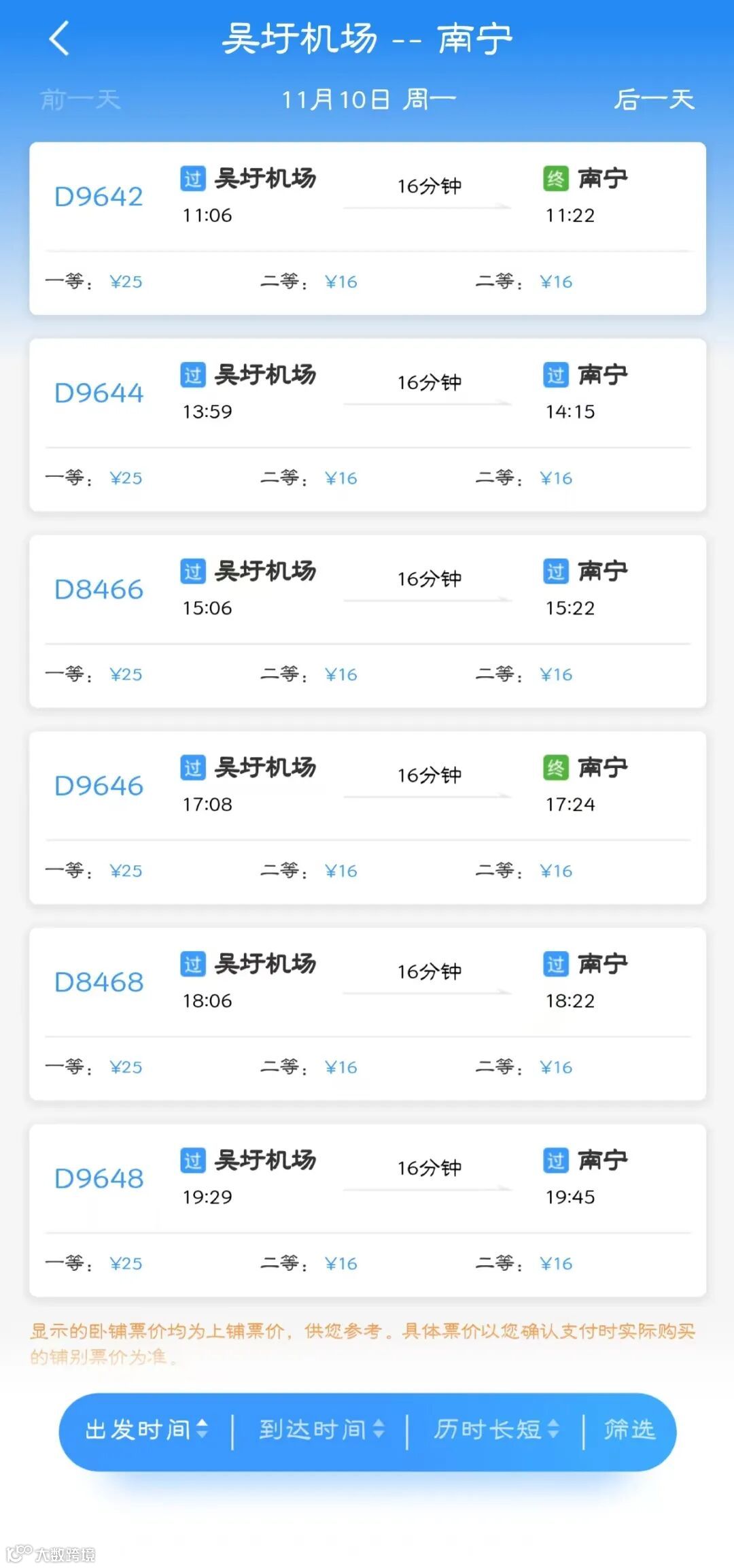 吴圩机场到南宁高铁时刻表
