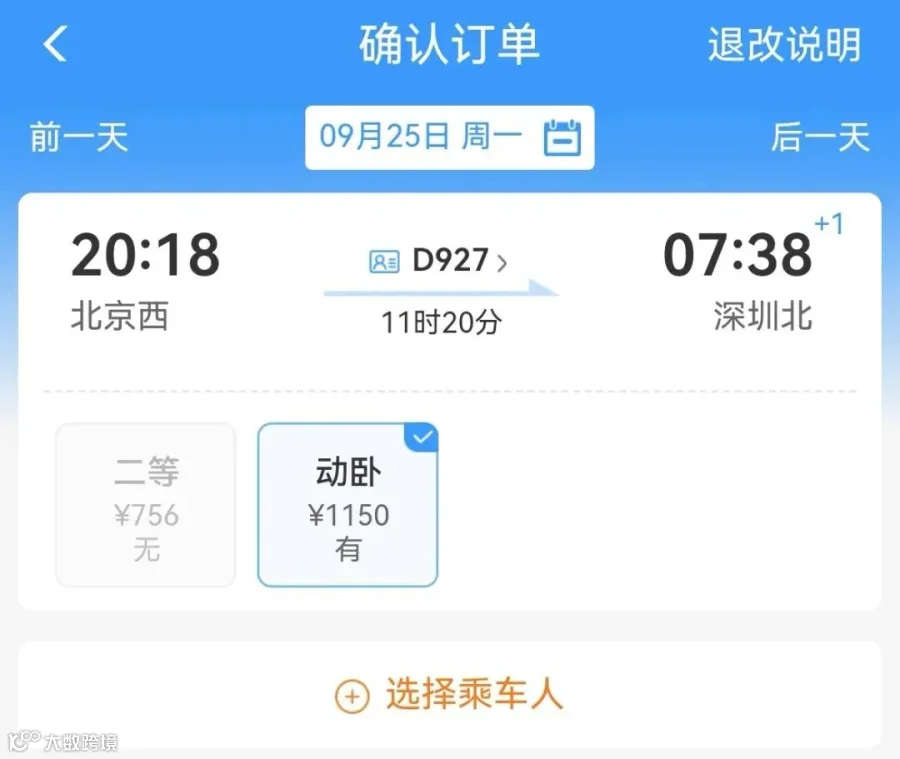 的D927卧铺,上铺平日1150元,但在9月28日(国庆假期前一日)价格涨到1860元,下铺动卧价格达到了2090元,超过了当日的机票价。
