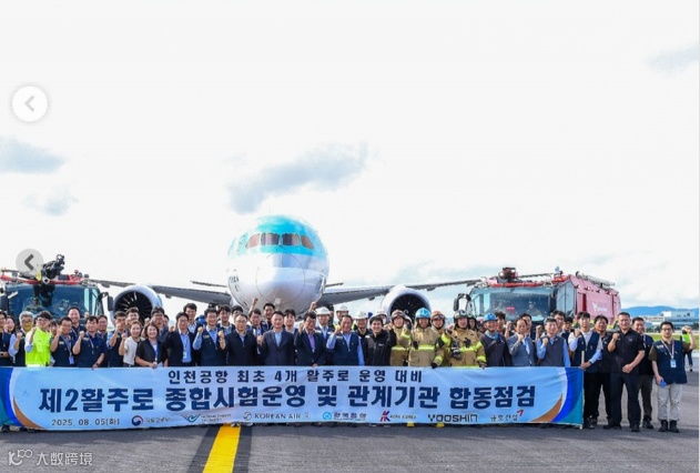 为确保9月重新开放的新铺装第二跑道安全,仁川机场已完成全面试运行测试。