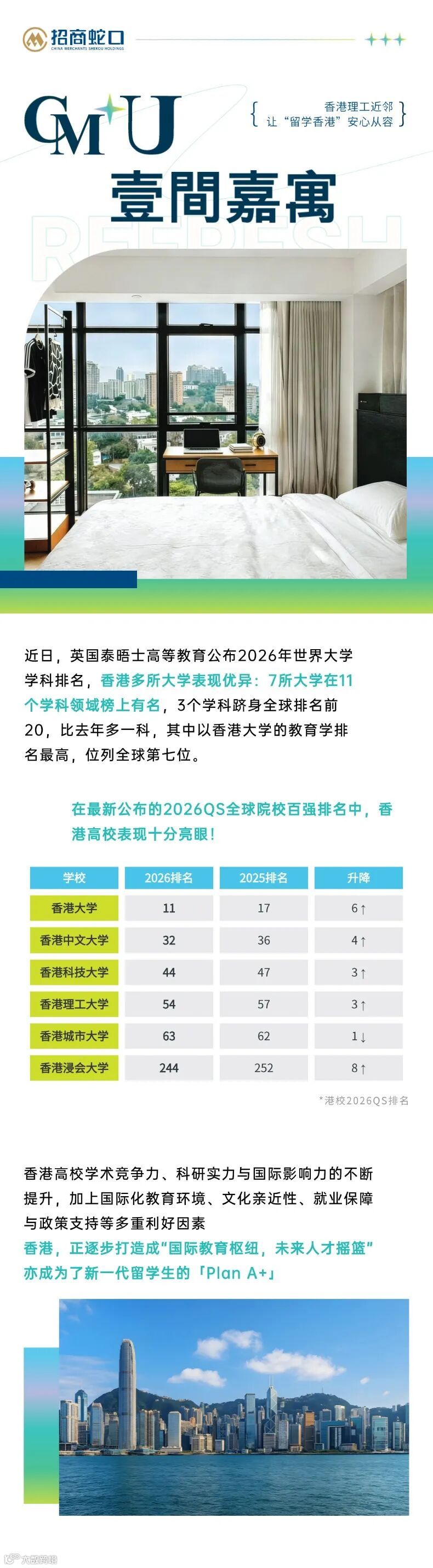 赴港留学更从容丨CM+U壹间嘉寓即将焕新而来 招商伊敦公寓