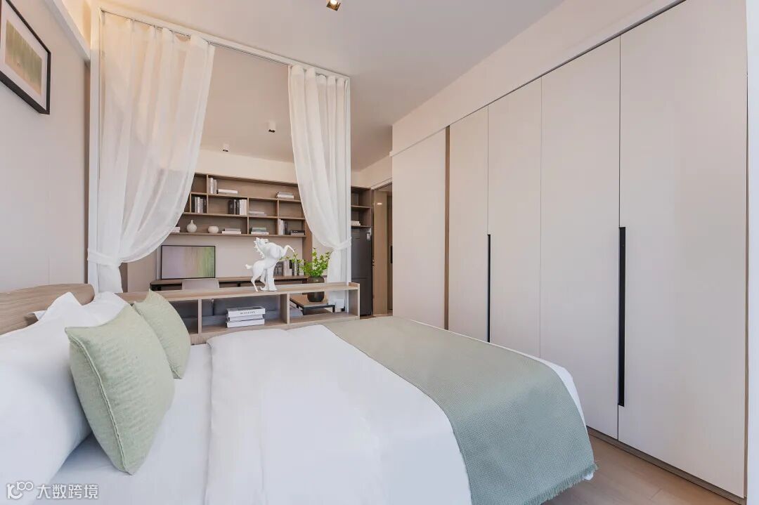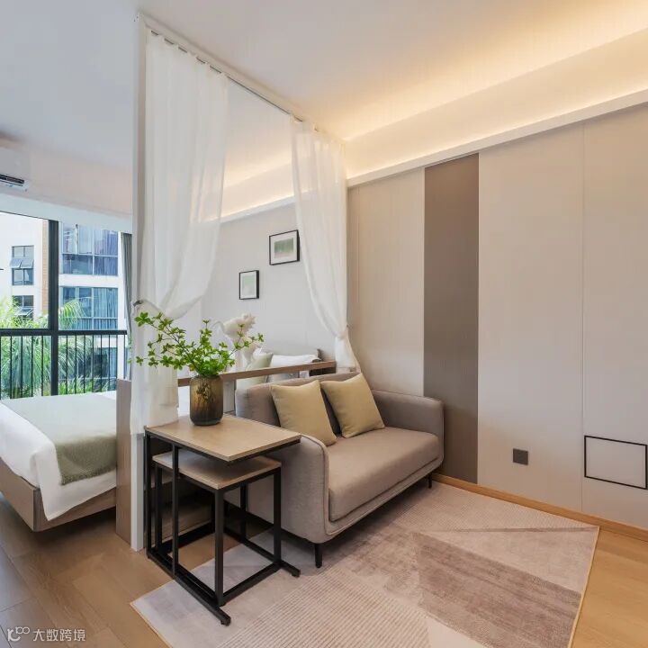 灵活窗帘隔断,一房变两区。无论是需要一个安静的睡眠角落,还是您想在夜间工作时不影响同伴休息,一键拉上隔断,即刻拥有私密空间。