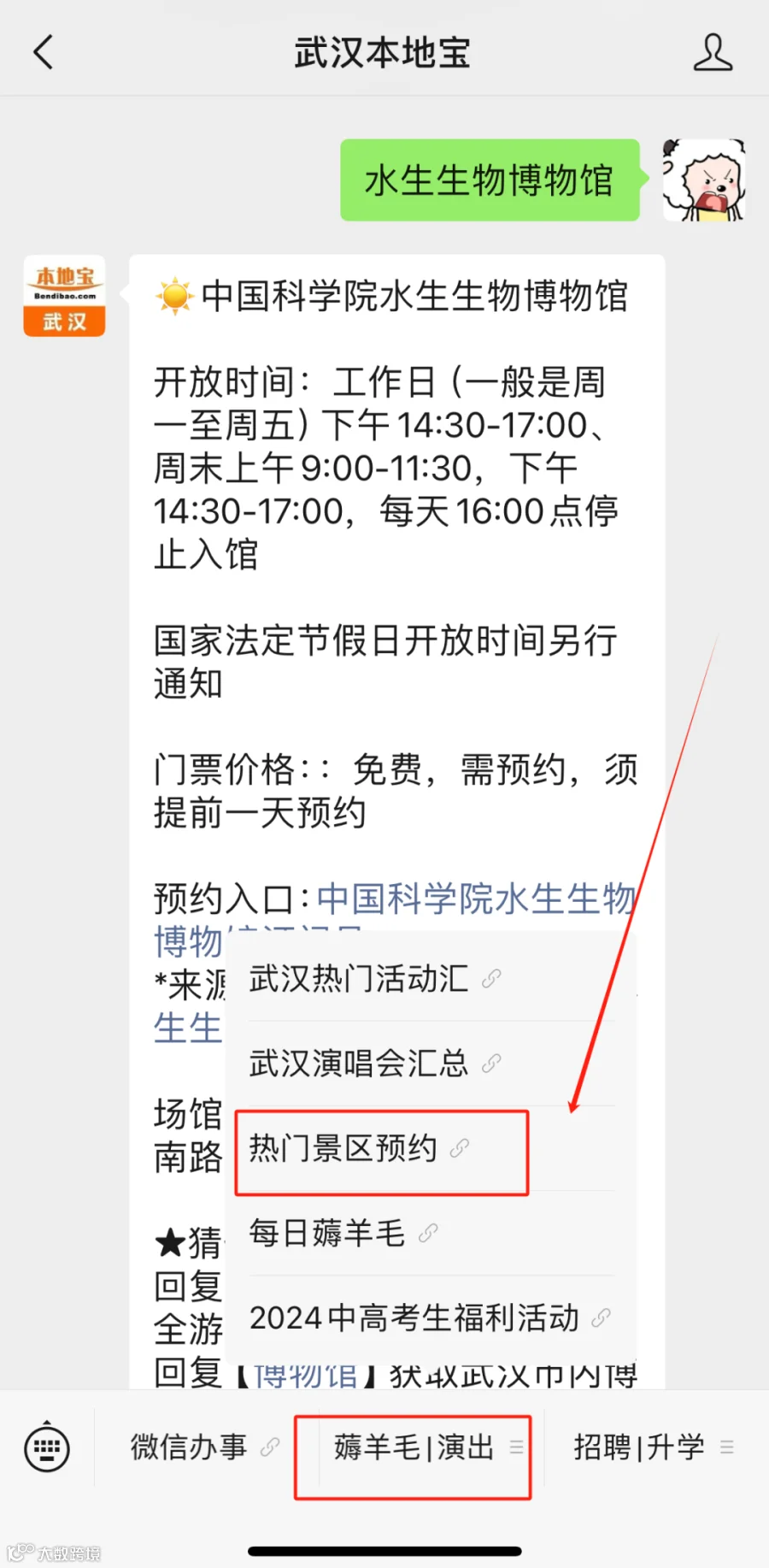 进入【武汉本地宝】公众号回复以下关键字: