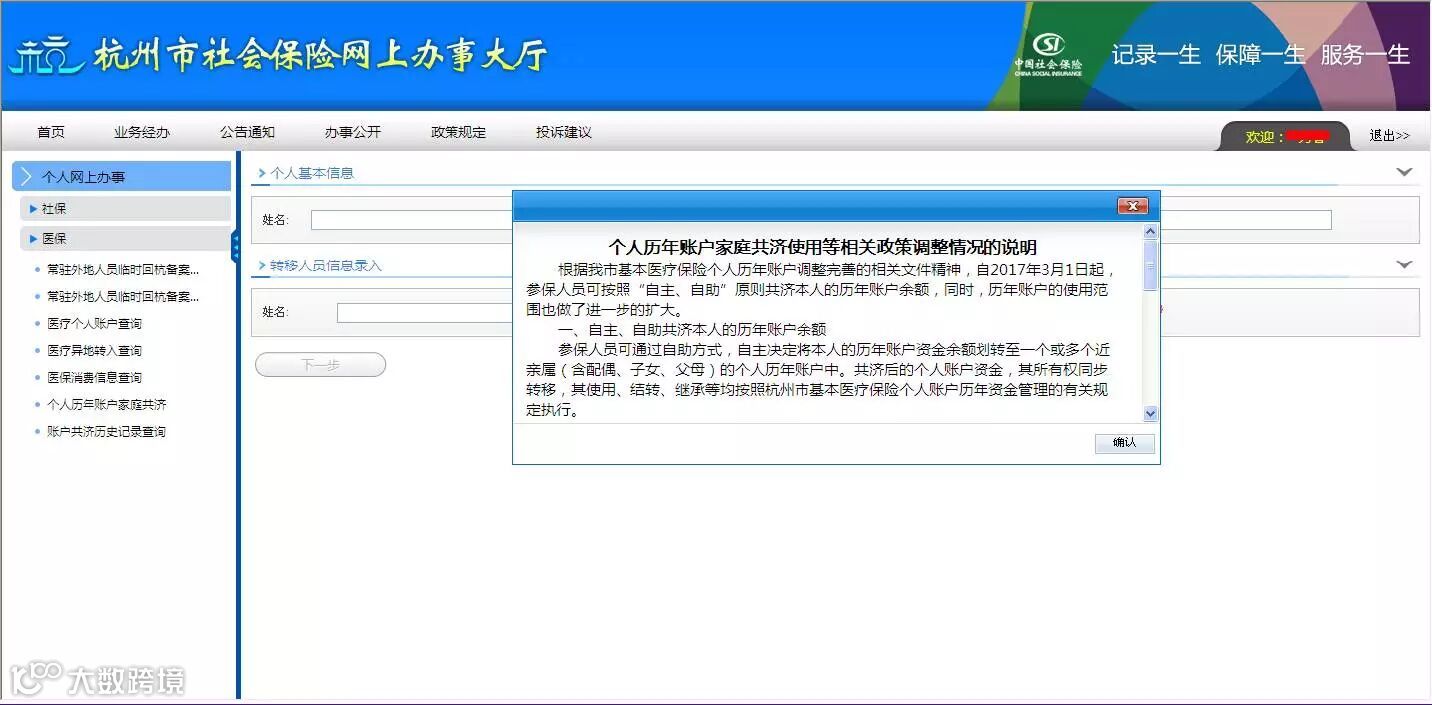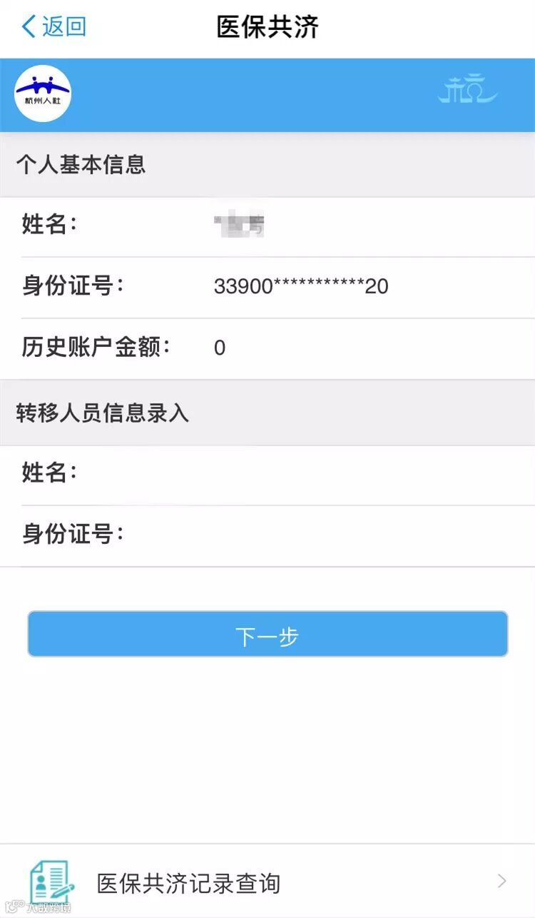 - 首页 → 社保查询首页 → 医保账户共济页;