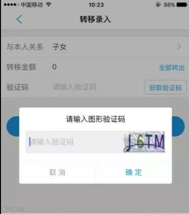- 填写关系、划转金额,获取验证码;