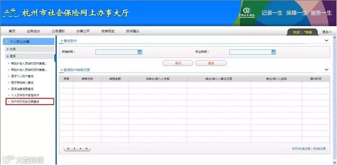 - 选择【账户共济历史记录查询】;