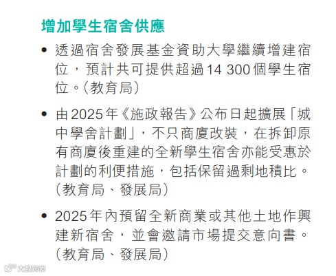 为巩固香港作为国际专上教育枢纽的地位,特区行政长官在2024年施政报告中宣布推出先导计划,以简化流程、增加学生宿位供应。2025年,该计划升级为“城中学舍计划”,进一步回应香港本地、内地及国际留学生的庞大住宿需求。