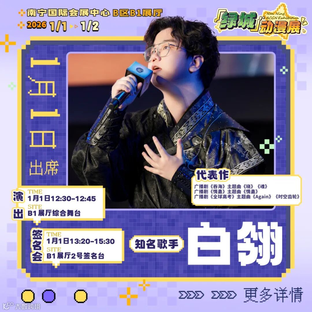 【绿城动漫展】1月1日ㅣ白翎ㅣ演出&签名会详情解锁,南宁见!