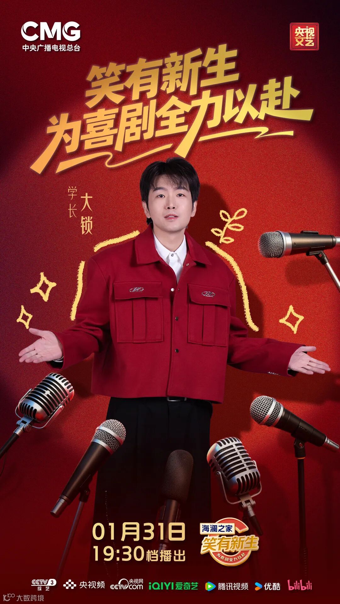 《笑有新生》总决赛第一场,高能来袭。锁定CCTV-3、央视频、爱奇艺、腾讯、优酷、B站 「锁向披靡队」,与大锁共赴欢乐满满的喜剧之旅~