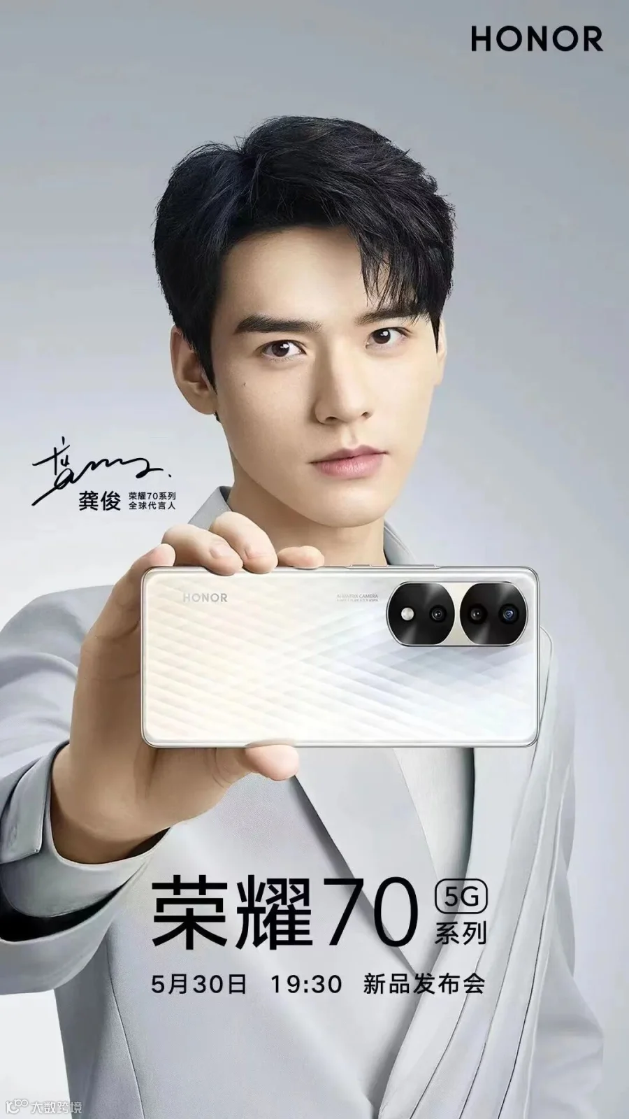 携手老朋友,共迎新惊喜!恭喜青年演员龚俊解锁荣耀70系列全球代言人!外观实力突破升级,强大内核助跑性能,用前沿科技与匠人精神,不断刷新使用体验。继50、60系列之后,续写合作篇章,记录精彩瞬间。5月30日,与代言人龚俊一起聚焦荣耀70系列新品发布会。美,焦点在我。