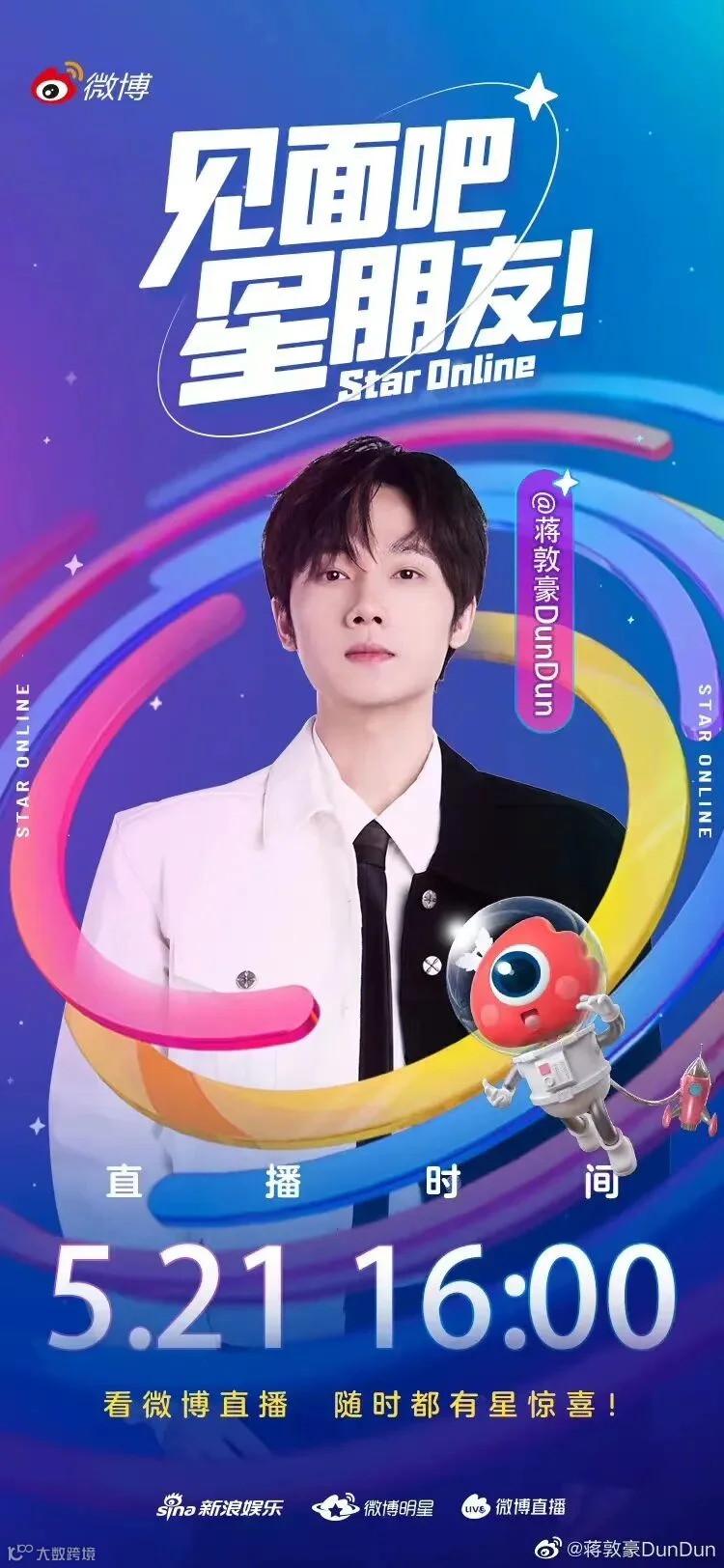 蒋敦豪0521生日线上直播来袭!在直播中,蒋敦豪抱着吉他弹唱经典老歌,用细腻又温柔的声音将故事娓娓道来!而后画风一转,搞笑的“男德”手册和会跳舞会唱歌的向日葵等让整个直播间逗趣十足~再一次祝福敦敦生日快乐,奔赴光亮!