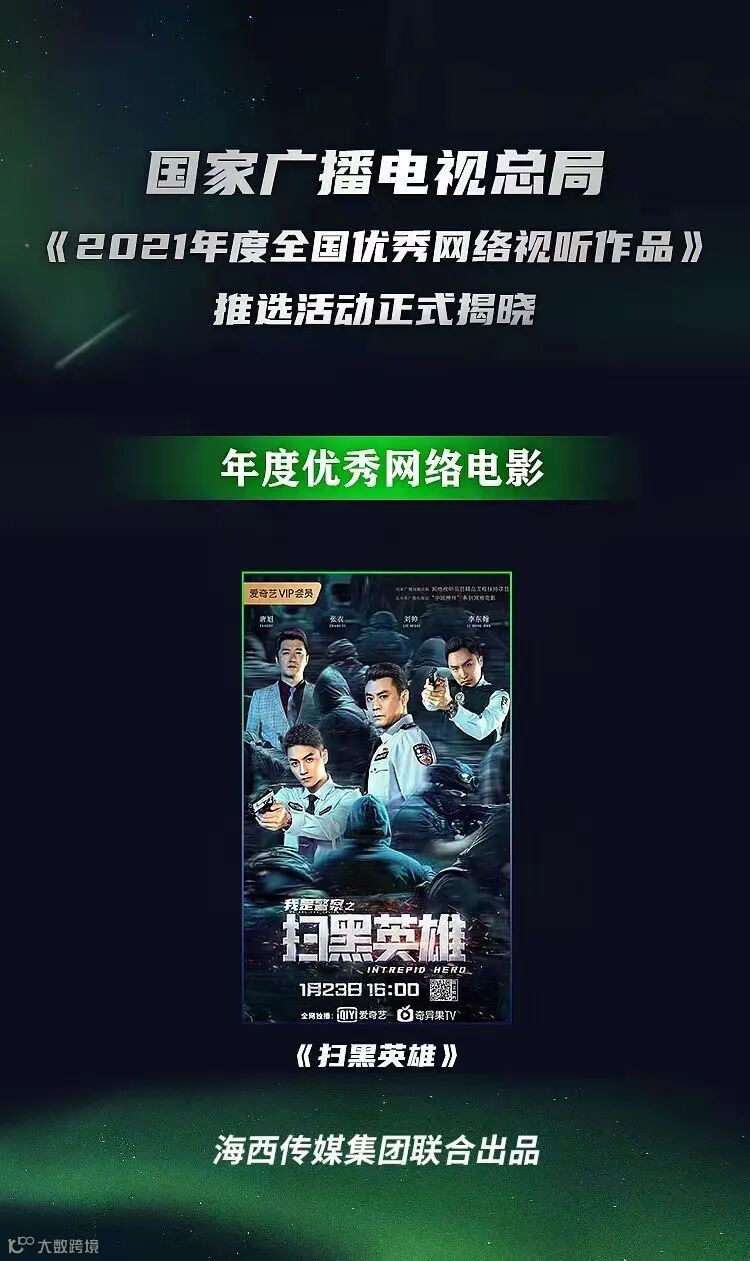 国家广播电视总局2021全国优秀网络视听作品推选活动正式揭晓!由海西传媒联合出品的扫黑题材电影《我是警察之扫黑英雄》荣获年度优秀网络电影称号。该片围绕地方黑恶势力、暴力拆迁、套路贷等问题,通过聚焦并展现大众关注的话题,让广大群众对扫黑除恶有更加直接的了解和认识。我们之所以生活在平安幸福之中,正是因为有无数无名英雄将黑暗挡在了我们看不见的地方,一起致敬扫黑英雄!