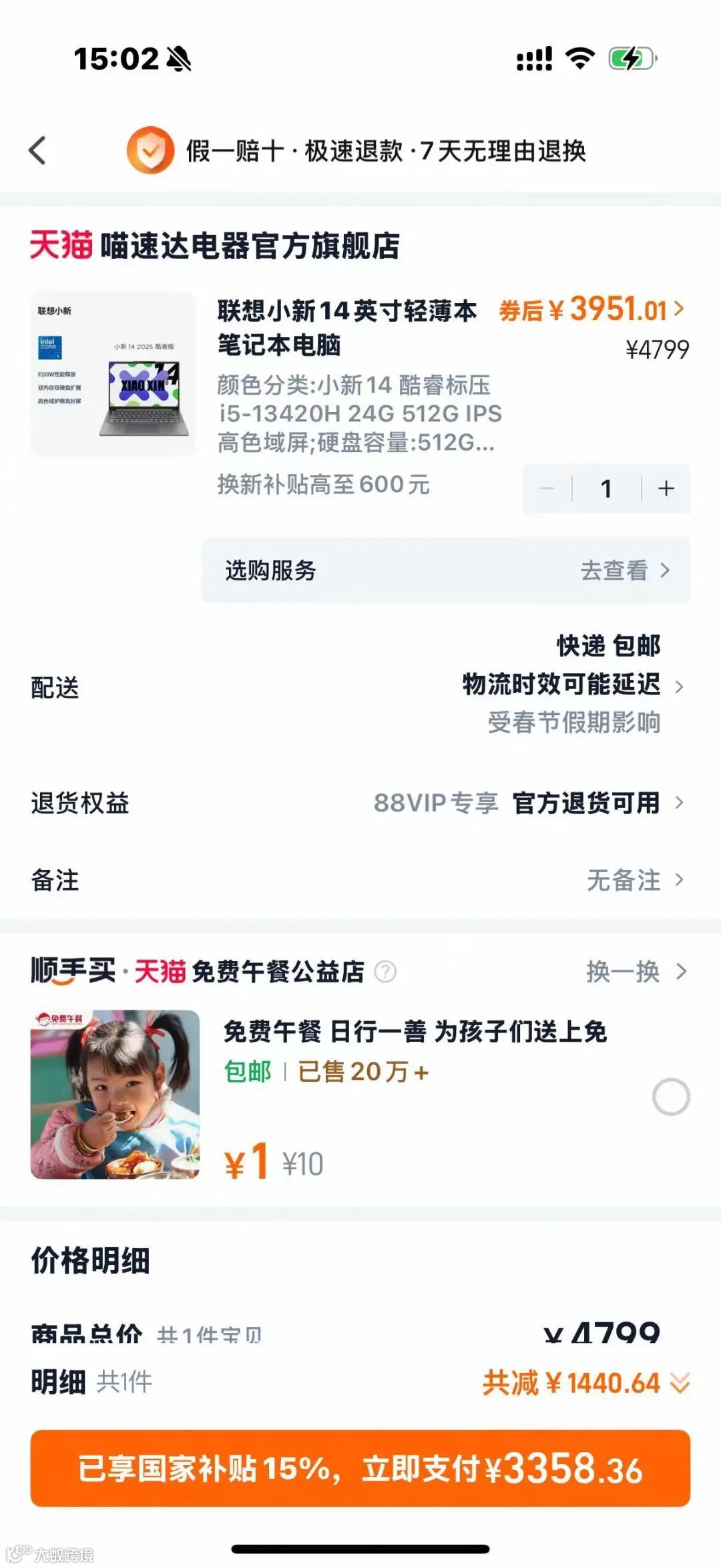 ✅使用要求:仅支持单商品下单时享补贴,跟其他商品一起下单时不生效补贴