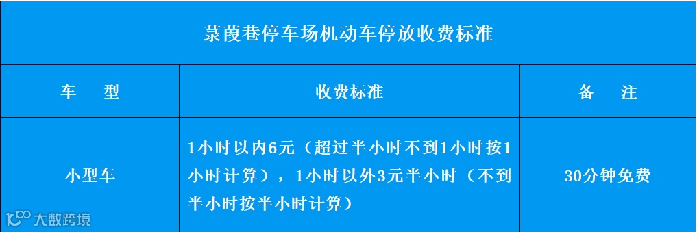 收费标准:1小时以内6元(超过半小时不到1小时按1小时计算),1小时以外3元半小时(不到半小时按半小时计算)