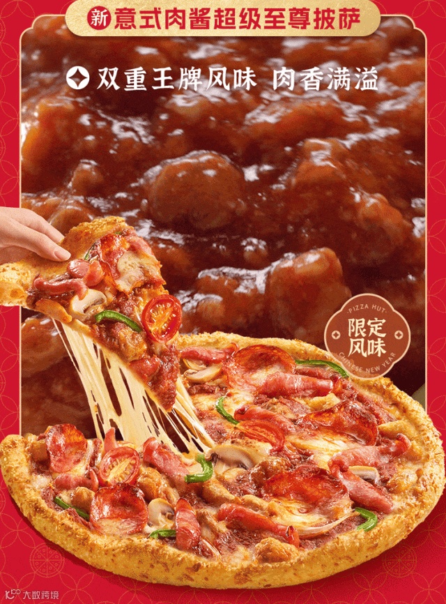 2026年02月09日至2026年03月08日期间,选购任一普装披萨并额外支付10元,即可将所购披萨升级为“金运熔岩山/鸿运熔岩山”款,共限量300,000份,售完即止。具体加价金额、产品样式请以餐厅实际供应为准。每单将统一收取外送费及(或)包装费,符合免外送费、包装费条件的情形除外。