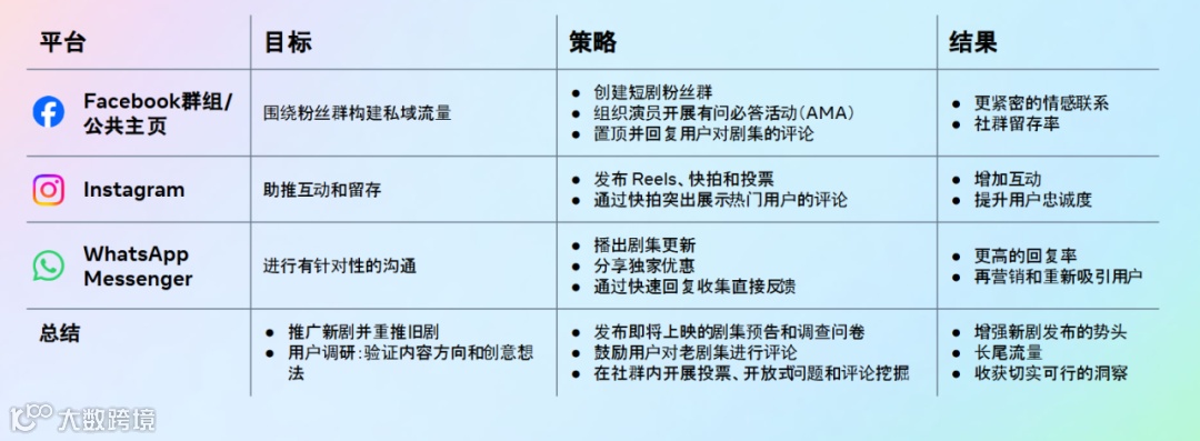 Meta生态覆盖更为全面,除了Facebook,Meta旗下还有年轻人喜爱的社交平台Instagram,以及主流聊天软件WhatsApp。丰富的产品矩阵让不同类型的短剧都可以在Meta生态中找到合适的目标受众。