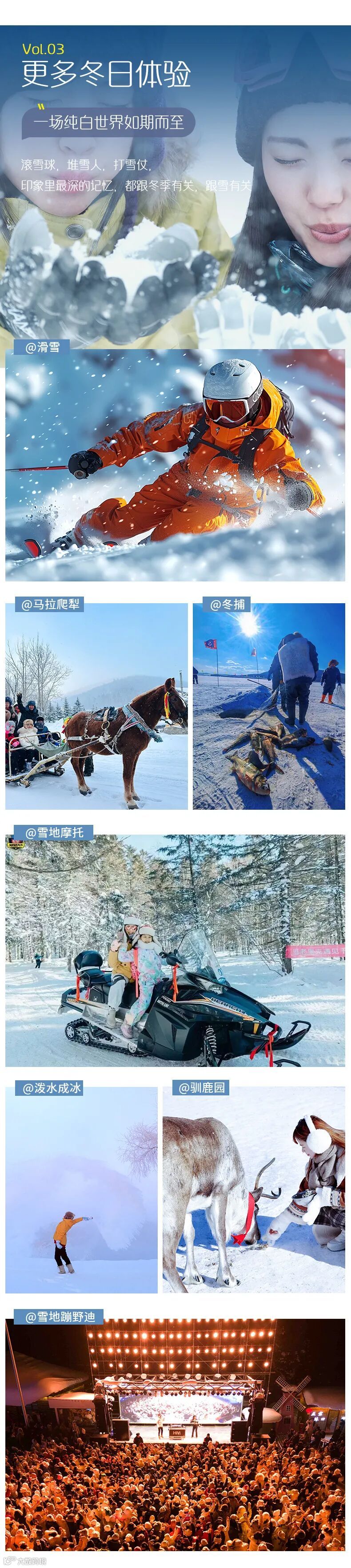 8、赠送亚雪驿站套票(雪地越野车、雪地摩托、戏雪乐园、高山动物园等,以景区通知为准)。