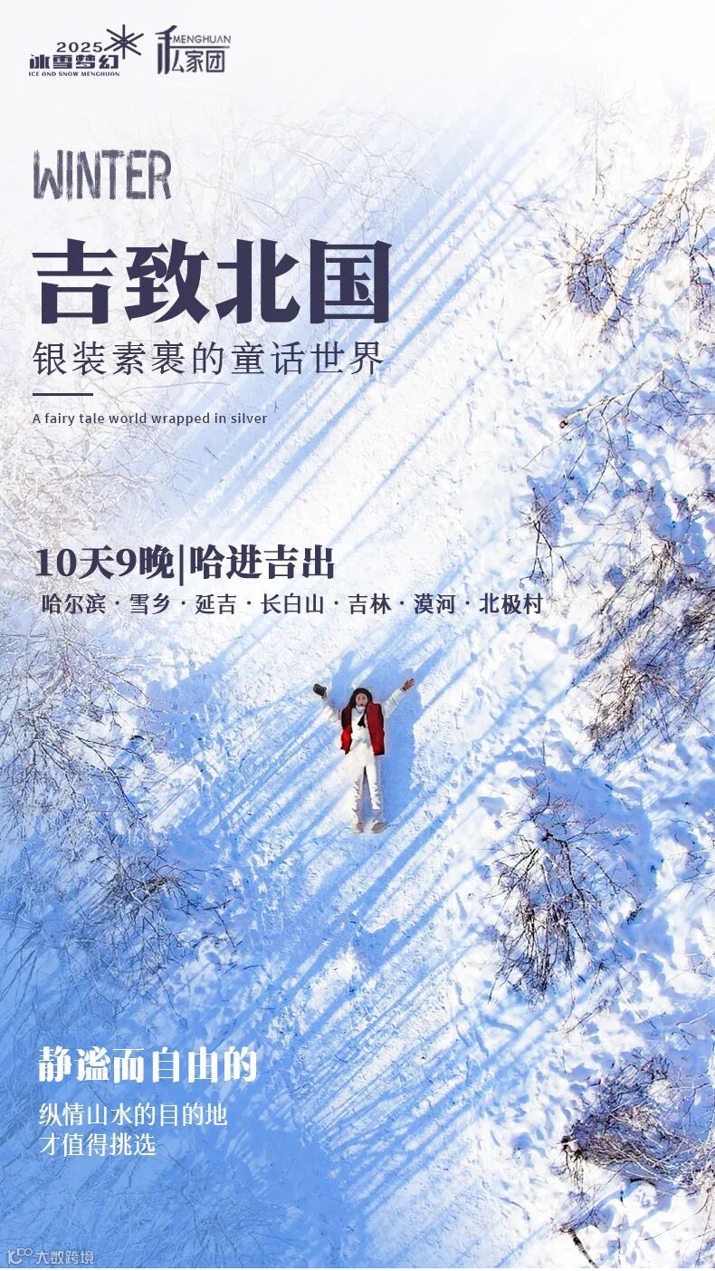 4、门票:冰雪大世界门票(未开放时间退门票328元/人)、漠河2小时滑雪包含雪鞋雪板雪杖使用、雪乡门票+往返环保车、朝鲜民俗园门票、长白山门票+往返环保车+倒站车、龙江第一湾门票+环保车、圣诞村门票、北极村门票、鄂温克驯鹿园门票;