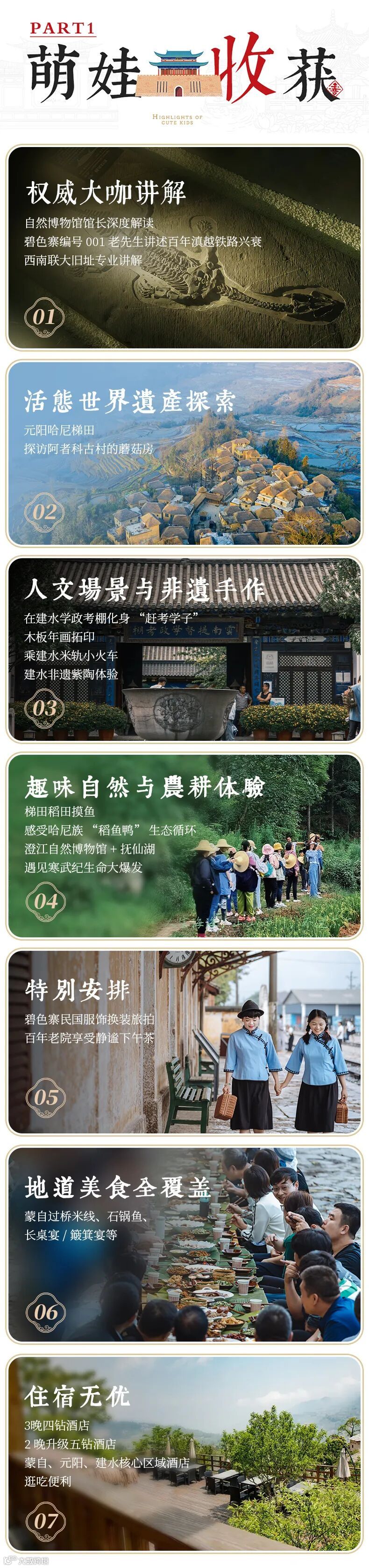 儿童费用所含门票已根据儿童优惠票执行,不重复享受半价门票优惠,1.2M以下儿童享受免票可退差价135元(碧色寨电瓶车、建水小火车无座);