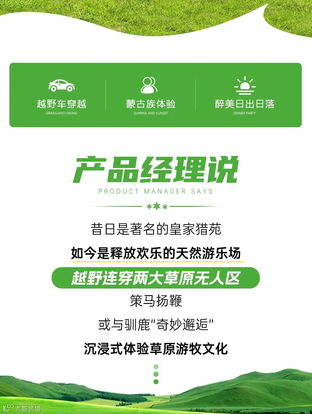 早餐后,开启越野车穿越之旅(约3-4小时),乘坐草原最狂野的越野车深入原生态草原腹地,我们会看到草原真正的美景,一路风光无限。