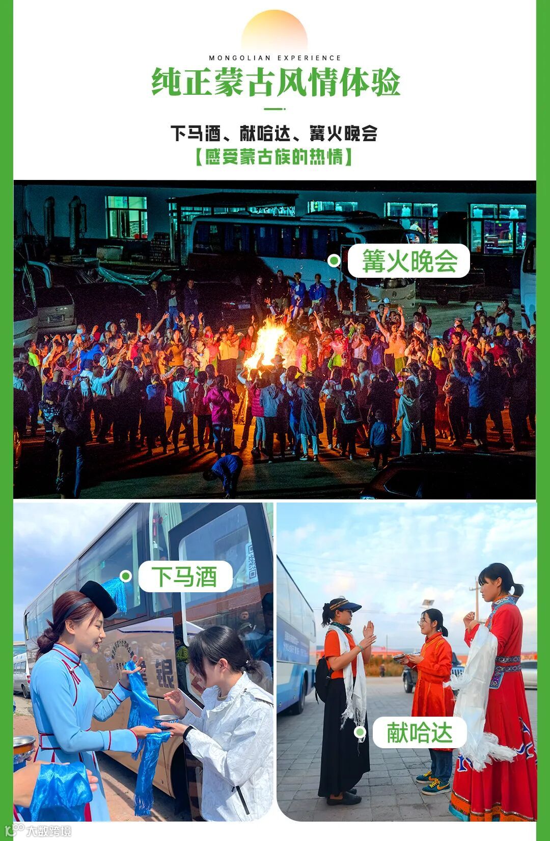 随后乘坐越野车穿越【浑善达克沙地】,开启一场北上扬尘的沙地之行。浑善达克沙地是一处未被开发的原始草原沙地,更是越野爱好者的天堂。这里地形多变、路况复杂,沙丘、泥地、河流、湖泊众多,泉水从沙地中冒出,野生动植物种类繁多,风景壮美。穿梭在一簇簇只有沙地才能生长的柳条丛中,沿途观湿地草原和金莲花、黄花、韭菜花等各色野生花草,我们肆意奔驰在凹凸起伏的浩瀚沙地上,感受越野冲沙的激情与刺激。