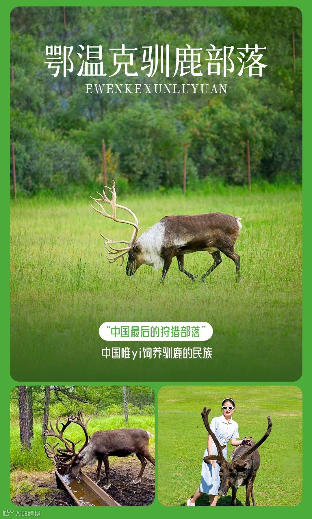 早餐后,前往神秘的【鄂温克驯鹿部落】,寻找“游猎民族”鄂温克的文化,近距离投喂、互动驯鹿、梅花鹿和羊驼。(费用自理)