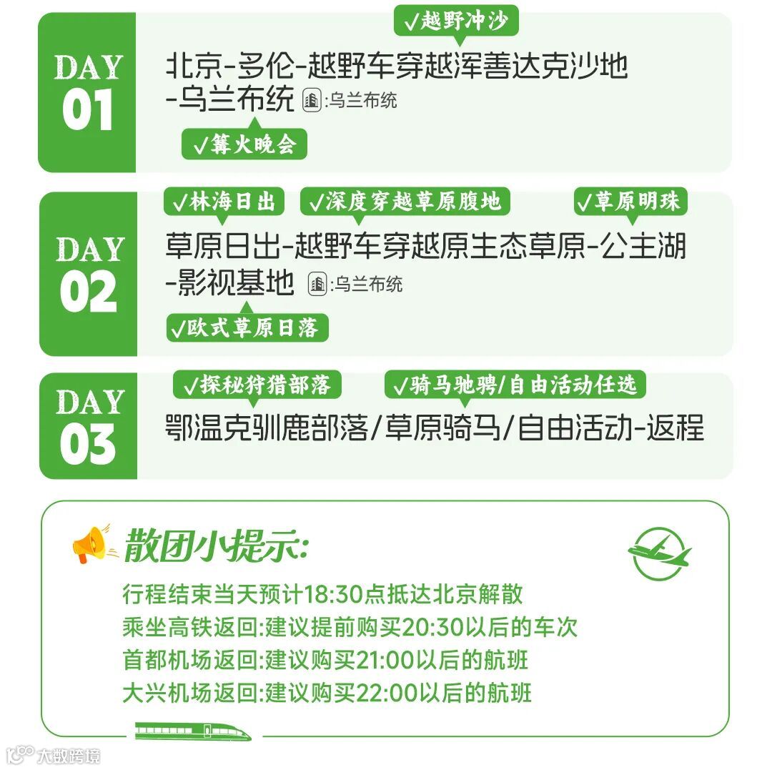 适时集合返程,预计18:30左右到达北京市。至此,我们的草原之旅已经结束,非常幸运和大家共享草原风光,期待我们的下次相遇~