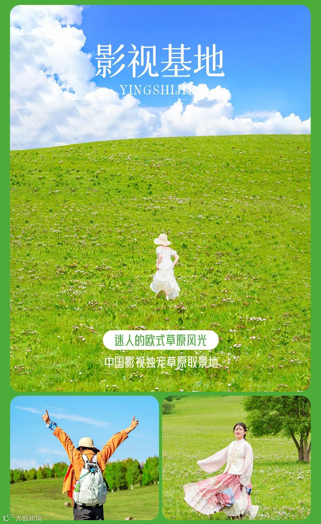 日落时分,来到【影视基地】看日落,顺着公路一路走到【欧式草原风光区】,蓝天、白云、青山、白桦林衬托着喧闹的百花世界,勾勒出一幅幅绚丽多姿的欧式油画。其中,《还珠格格》《康熙王朝》《射雕英雄传》《芈月传》《狼图腾》等著名影视剧都曾在此取景。我们打卡拍照完沿着栈道上去看日落,夕阳的余晖染红了天边,漫天的云彩在落日的照耀下熠熠生辉,如同一幅瑰丽的画卷。